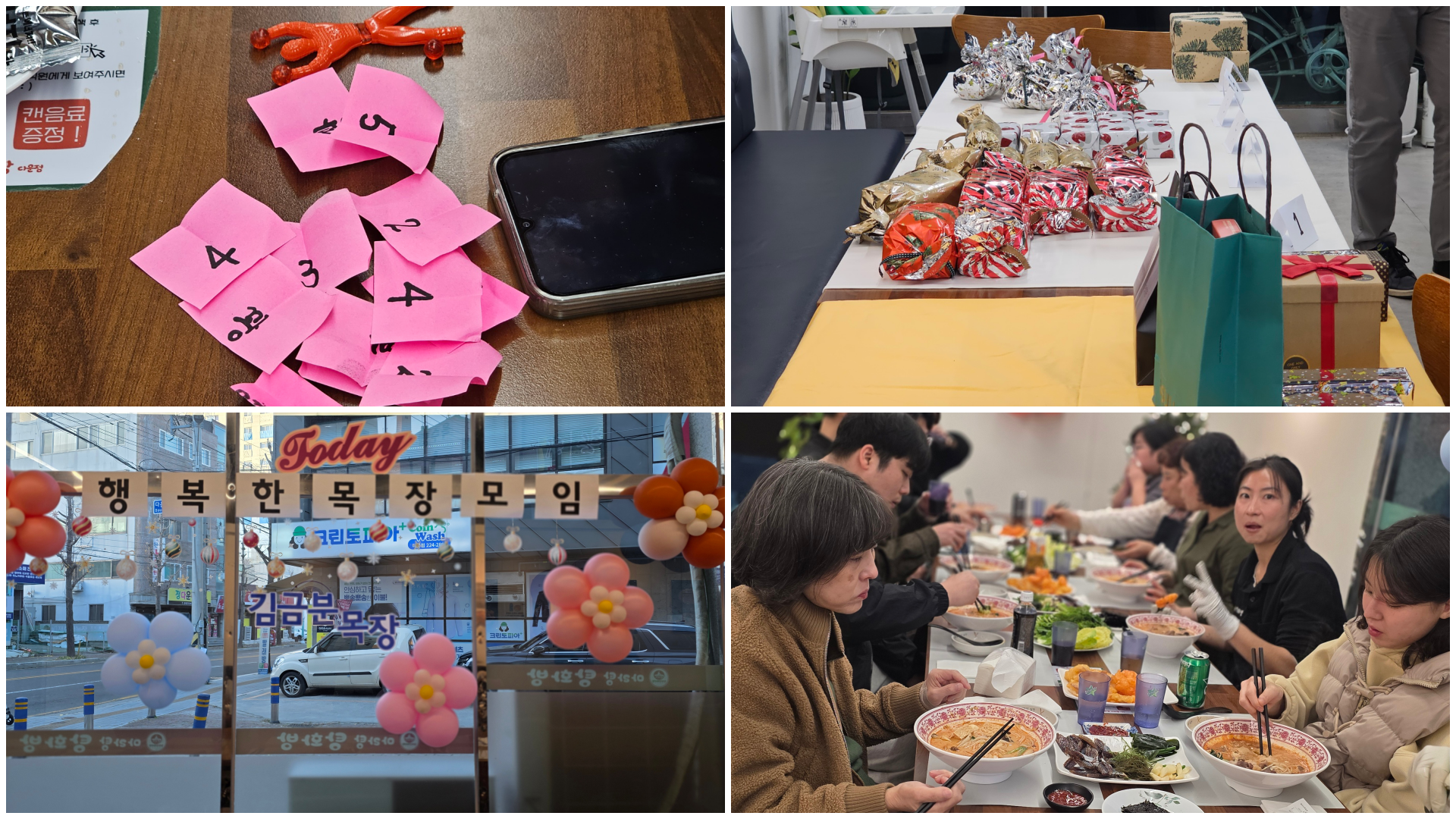 목장에서는 가정생활에 필요한 선물로 100개를 전날 모여 포장하여 준비하니